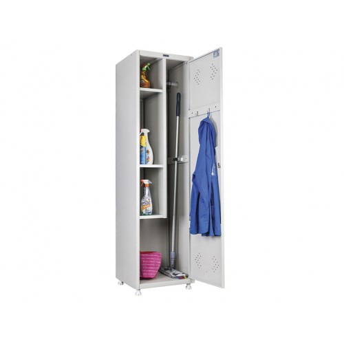 | Количество полок: | Вертикальная перегородка, 3 полки под хозяйственный инвентарь, держатель для швабры, крючки для тряпок |